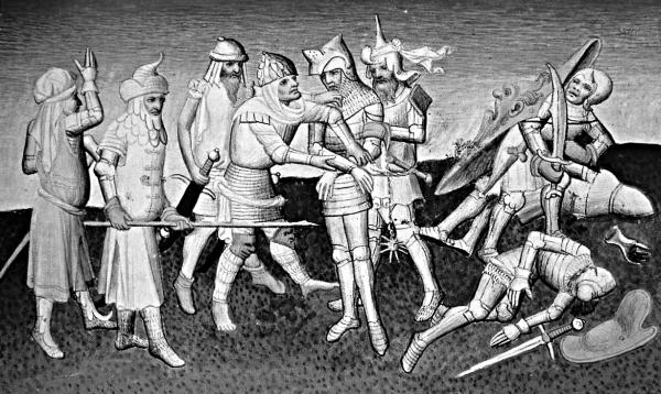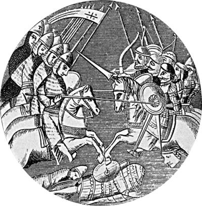 Битва крестоносцев с сарацинами. Средневековая книжная миниатюра