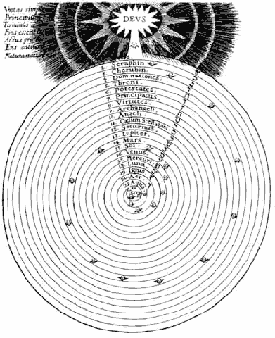 В четырнадцатой главе сочинения «О христианской религии» Фичино следующим образом представляет космическую иерархию, включающую и девять духовных чинов: