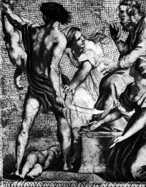 Снова послали за Давидом, чтобы он музыкой излечил царя. Юноша вошел к нему и стал играть на своей арфе. Саул смотрел на него невидящим взглядом. Потом он вдруг очнулся, в его глазах зажглась ненависть, он схватил копье и метнул в Давида. Юноша в последний миг уклонился, и копье вонзилось в стенку.