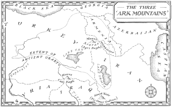 Самая древняя доступная нам информация содержится на Вавилонской карте мира и в сопутствующих ей надписях и текстах. Эта информация отражает идеи и представления начала второго тысячелетия до Р. Х., т е. на тысячу лет более древние, чем сама табличка. Согласно этим представлениям, Ковчег пристал к земле на чрезвычайно удаленной гигантской горе, расположенной далеко за страной Урарту, на противоположном берегу Океана, окружающего обитаемую землю, и далеко за пределами человеческого знания. Иными словами, чтобы найти Ковчег, надо пересечь всю область Урарту и продолжить в том же направлении, в некотором смысле в бесконечную даль. Эта концепция господствовала в течение долгого времени, начиная самое позднее с XVIII века до Р. Х., и мы почти наверняка имели бы ее явное выражение, если бы из той эпохи до нас дошел полный клинописный рассказ о Потопе (Табличка Ковчега является лишь его частью).