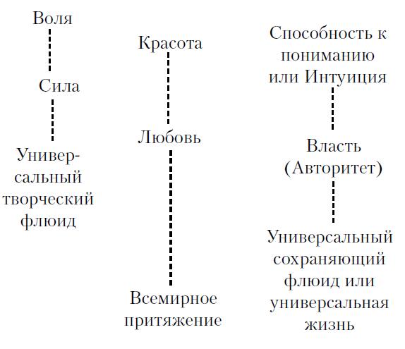 Natura naturans или созидание рождается под действием и взаимодействием Отца и Сына, активного и пассивного творческого начала. Так возникает Универсальный созидательный флюид, уравновешивающий и реализующий в себе и волю, и силу.