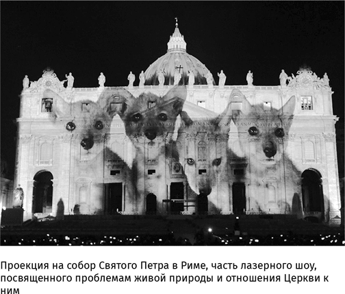 С цитаты из святого Франциска в 2015 году начал свою энциклику Laudato si и взявший имя в его честь папа Франциск[203]. Никогда до этого папы так прямо и однозначно не говорили об экологических проблемах, и никогда прежде это не делалось так ярко – вплоть до того, что в день публикации текста на собор Святого Петра проецировали изображения животных.