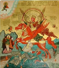 Великий архистратиже Божий, Михаиле, победитель демонов, победи и сокруши всех врагов моих видимых и невидимых. И умоли Господа Вседержителя, да спасет и сохранит меня Господь от всех скорбей и от всякой болезни, от смертоносной язвы и от напрасной смерти, о, великий архангеле Михаиле, ныне и присно и во веки веков. Аминь.