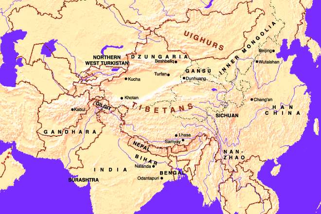 Затем Три Сондецен направился в коридор Ганьсу (Ганьсуский проход), перекрыв танскому Китаю прямой доступ к Великому шелковому пути, главная северная ветвь которого пролегала между танскими форпостами в Турфане и Куче. Это вынудило китайских торговцев обходить занятые тибетцами территории севернее, через земли уйгуров во Внутренней Монголии. Затем тибетцы вступили в затяжную войну с уйгурами и танским Китаем за господство над Турфаном и Бешбалыком, где танское правительство сохраняло лишь номинальную власть. Чтобы добраться до главной северной ветви Великого шелкового пути, китайские торговцы, шедшие в обход через Внутреннюю Монголию, были вынуждены проходить через эти два города.