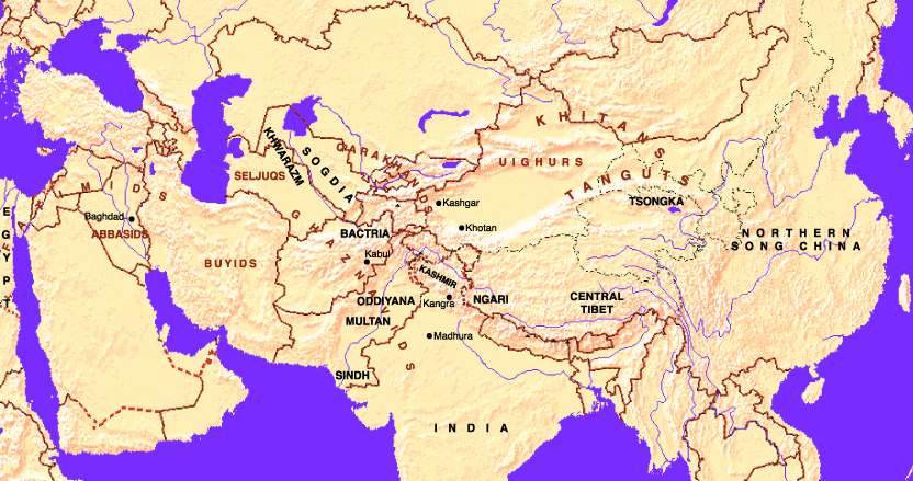 Карта № 27: Расцвет империй Караханидов, Газневидов и тангутов в первой половине XI века