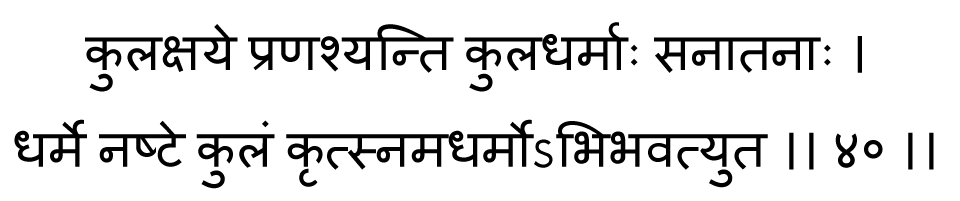 dharme naSTe kulaM kRtsnam-adharmo'bhibhavaty-uta || 40 ||