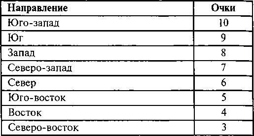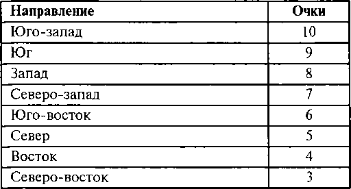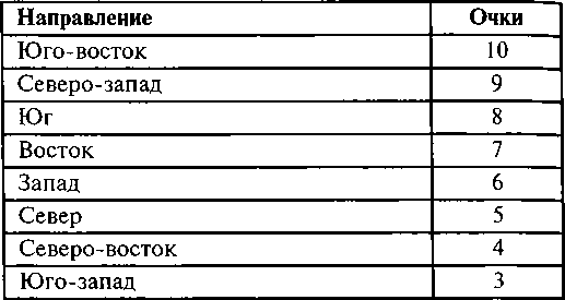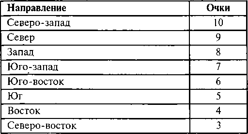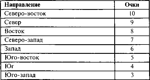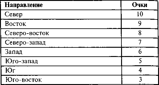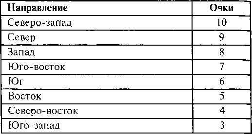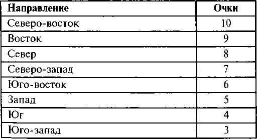 2. Начинайте с этапа 1. Если, например, ваше рабочее место расположено на западе, обведите 8 в колонке для очков.