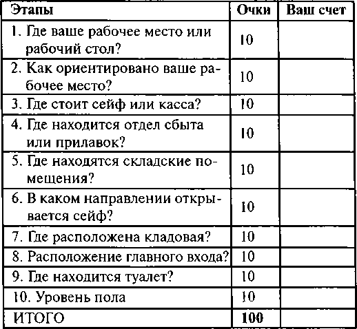 В небольшом офисе, где владелец сидит на юго-западе и сам осуществляет продажи, подсчет очков может быть слегка другим: 10 для юго-запада и 7 для северо-запада.