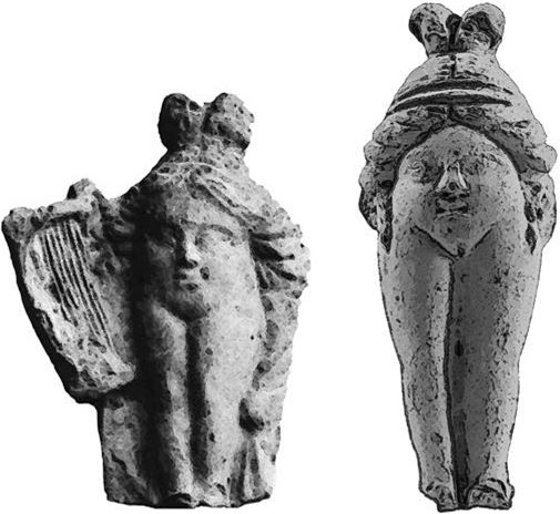 К тому же периоду истории относится найденное в Сербии изображение богинь-близнецов (см. рис. 9). Культы более позднего периода Античности сохраняют преемственность с верованиями древнейших времен, становятся гораздо утонченнее и прекраснее.