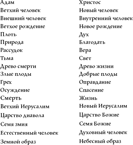 1. Каждый христианин двойственен, и в нём обретаются два противоположных человека с делами своими, как это ясно из следующей таблицы: