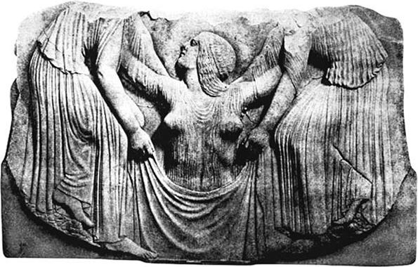 Рис. 94. Рождение Афродиты (резьба по мрамору, античная Греция или, возможно, античная Италия в античном греческом стиле, 470–460 гг. до н. э.)