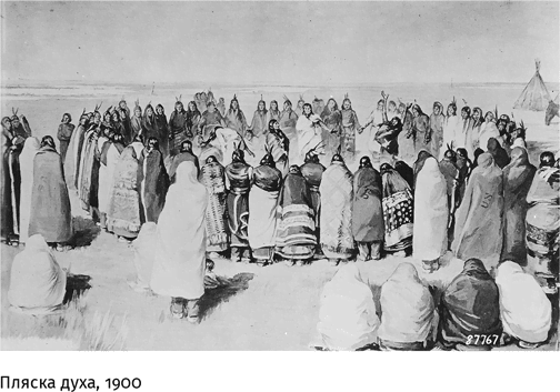 И с сегодняшней точки зрения учение Вовоки не лишено интереса. На североамериканских индейцев конца XIX века оно произвело большое впечатление, тем более что сопровождалось красивыми ритуалами – прежде всего собственно Пляской духов, новым обрядовым танцем. Еще недавно враждовавшие племена начали искать общий язык. Агрессия, направленная против белых, тоже пошла на спад. И все же у американского правительства Пляска духов вызывала сомнения: это было охватившее резервации мощное самостоятельное движение покоренных племен, дающее им надежды на скорое исчезновение колонизаторов и сопровождаемое языческими обрядами и регулярными путешествиями проповедников между общинами. Те, кто лучше понимал культуру индейцев, не волновались. Но среди офицеров и сотрудников Бюро по делам индейцев хватало и тех, кто не знал местных традиций и не желал в них вникать. Напряжение нарастало.