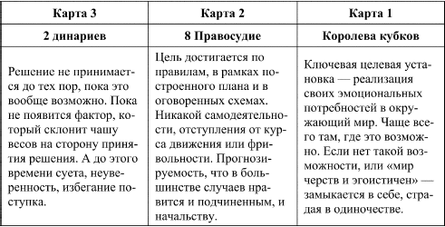 Человек ведет себя подобным образом, потому что его внутренний «голос», интуиция, чутье, подсказывают ему действовать именно так. Всему «виной» Королева кубков – человек не понимает эмоциональных людей, сторонится бурных проявлений эмоций. Для того чтобы вернуть восприимчивость этому человеку, достаточно изменить стиль поведения: вести себя собранно, логично, предсказуемо – это снимет внутреннюю напряженность.